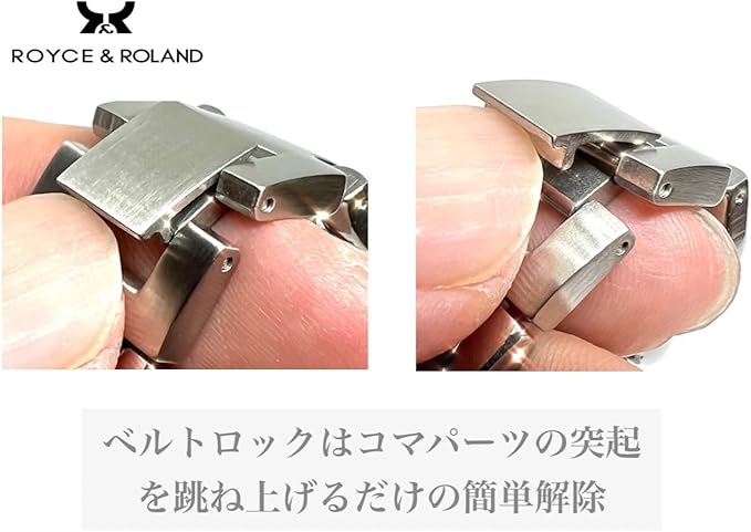 【工具不要でサイズ調整も楽々】コマはロック式で、工具を使わず自宅で簡単に調節可能です。時計店などの専門店での調整はいらず、取り外しはワンタッチなのでベルトの着脱に手こずる心配もありません。※ベルト長はコマを外すことで調節できます。
