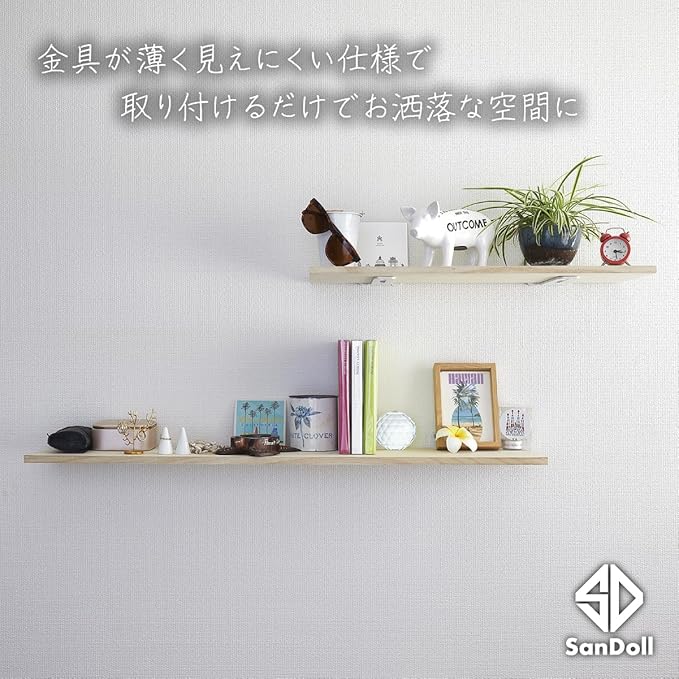 こちらの商品は、当社特許取得商品(意匠権)になります。海外でも特許を取得した商品になります。スッキリしたデザインでありながら、出来る限りの軽量化と強度を実現するデザインになっております。オシャレな外観を維持しながら、実用的な収納スペースを確保します。ボード壁等に極力負担をかけず、強度を維持する設計になっております。 【注意】棚板の長さ、重さ、置物の位置、重さ等により荷重は変わります。耐荷重に不安な場合は、設置金具の本数を増やしてください。構造上、設置壁面に大きく負荷がかかります。設置する際は壁面の素材を考えた重量物を置くようにしましょう。設置金具を増やすことにより、耐荷重を上げる事は勿論、負荷を分散し、接地面への、負荷を軽減する事にもなります。