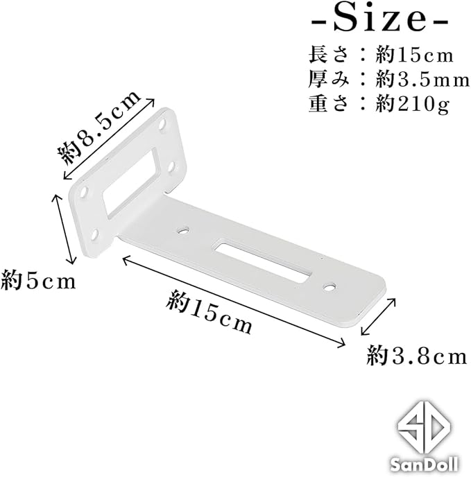【高品質素材】棚受け金具は厚さ3.5mmの高品質鋳鉄製で出来ております。一体成型、非溶接構造です。こちらの商品は設置壁面のダメージを軽減する、軽量タイプデザインになっております。塗装はお洒落なホワイトになります。
