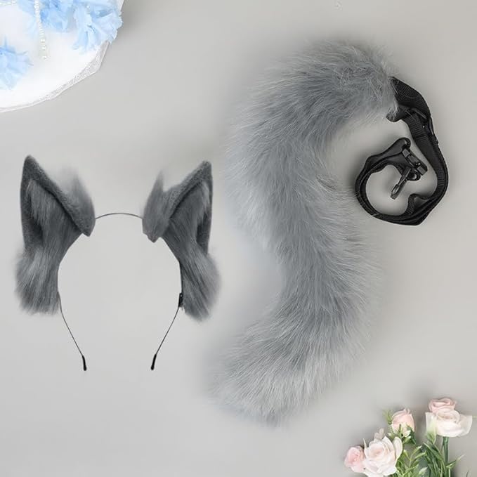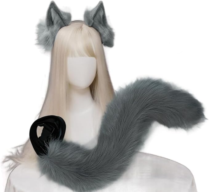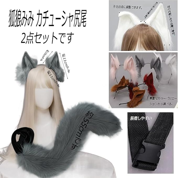 きつね耳 しっぽ 狐 狼みみ カチューシャ尻尾 手作りセットコスプレ アクセサリー ハロウィン文化祭 学園祭 仮装 変装 オオカミ耳 コスチューム 男女兼用 (グレーGray) | oioioichan