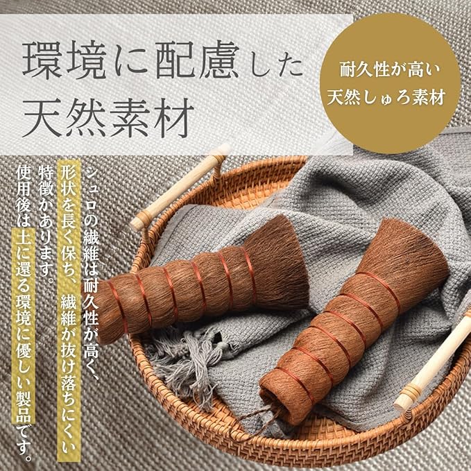 ✅【耐久性抜群】 シュロの繊維は耐久性が高く、長く使用しても形状を保ち、繊維が抜け落ちにくいのが特徴です。【エコフレンドリー】天然素材であり、使用後は土に還る環境に優しい製品です。