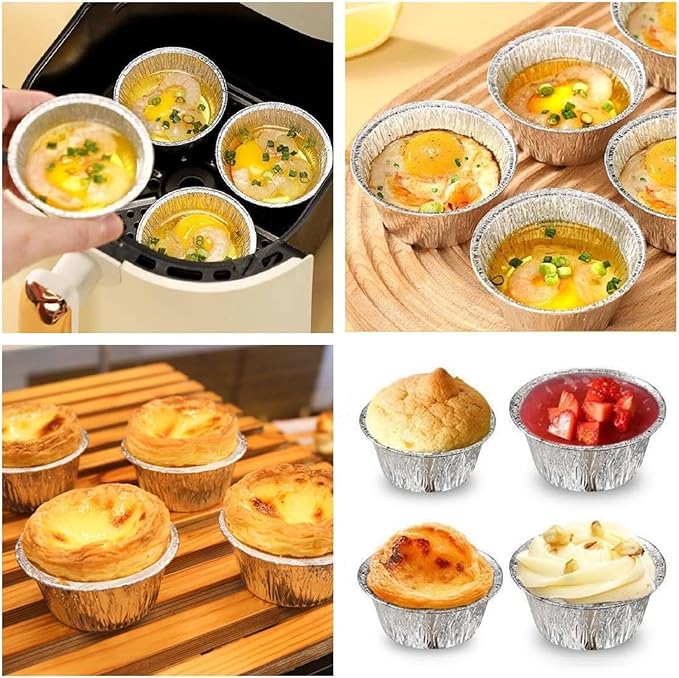 ❤【ベーキングパン不要】ノンスティックなアルミホイルベーキングカップは、グリースが味に影響を与えず、食材の水分を効果的に保持し、底を広げて焼くことによる油やの飛沫を防ぎます。