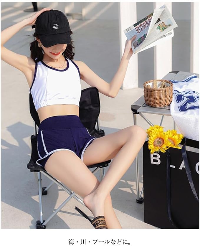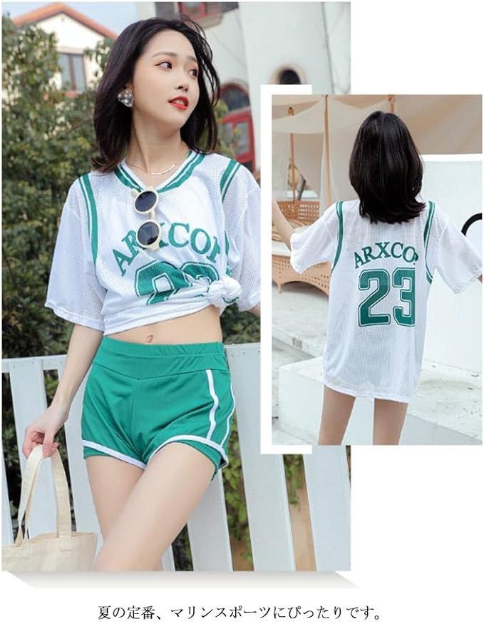 水着 レディース 3点セット タンキニ 体型カバー ラッシュガード 半袖 Tシャツ タンクトップ ショートパンツ ビキニ セパレート 露出控えめ 高校生 女の子 可愛い オーバーサイズ スポーティー 海 プール リゾート | oioioichan