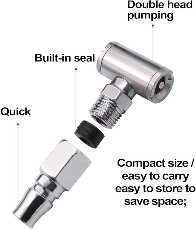 ◨操作が便利:タイヤポンプノズルのクイックコネクタ機能を使用すると、瞬時に接続し、より速く膨張できます。軽く押すだけでスムーズで邪魔のない膨張プロセスが実現し、理想的な利便性を実現します。
