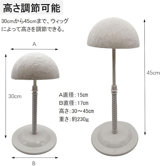 Haverain ウィッグスタンド 帽子スタンド 30~45cm高さ調節可能 かつらスタンド ウィッグハンガー 組み立て式 分解簡単 型崩れ防止 ウィッグ保管 帽子掛け ウィッグ乾燥用 HR24058 | oioioichan