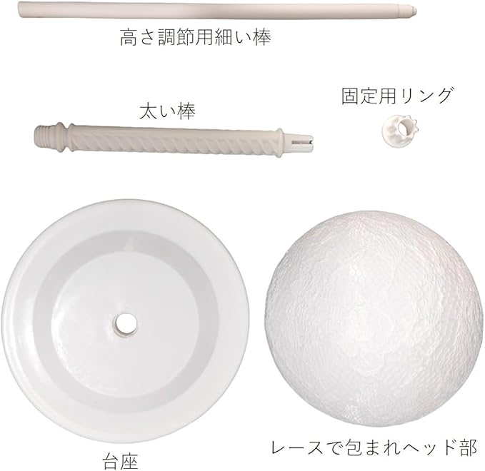 素材:プラスチック、レース。高さ:30~45cm調節可能 。重量:約230g。