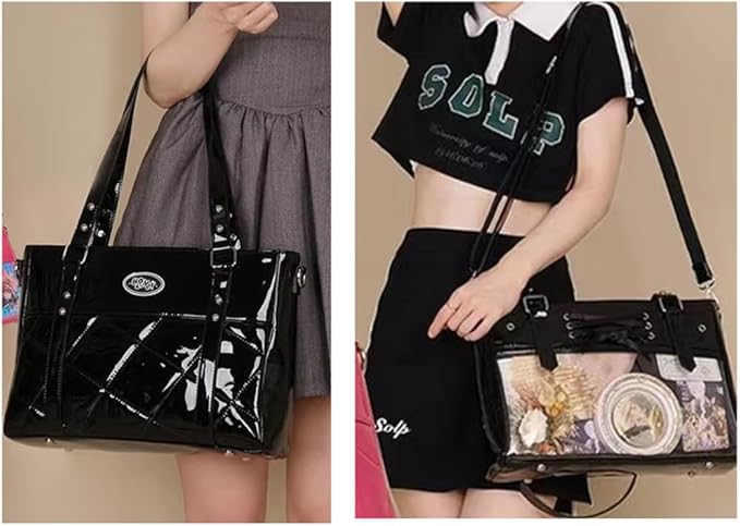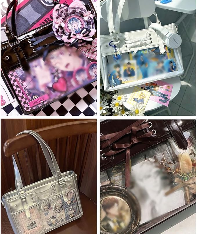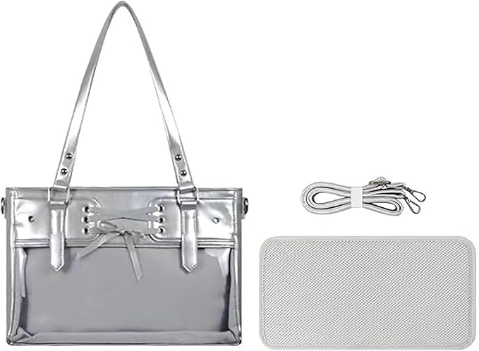 痛バッグ トートバッグ 大きめ 痛バ ショルダー クリアバッグ 透明窓 デコバッグ 3way トート ショルダー 斜めがけ 痛バ おしゃれ 大容量 推し活 普段使い (シルバー) [並行輸入品] | oioioichan