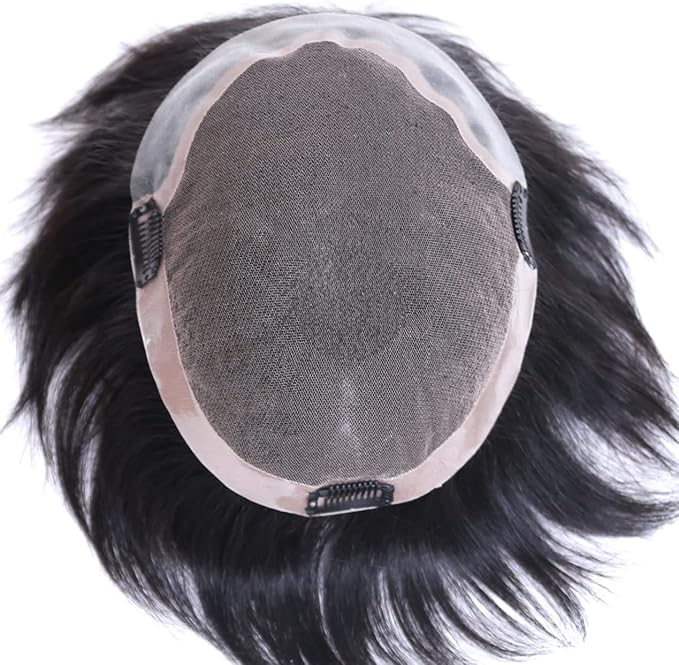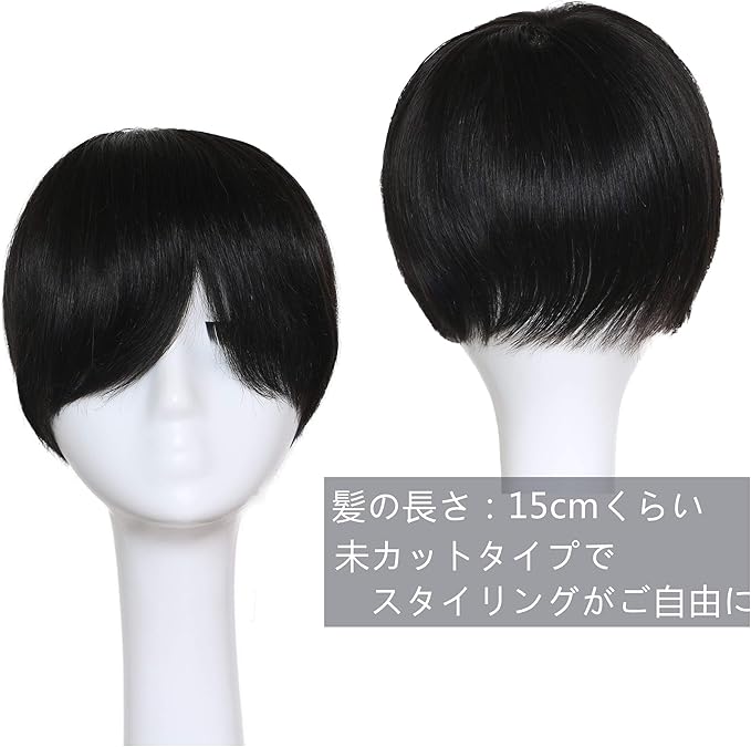 LARI-Lrj メンズ ウィッグ ヘアピース 部分ウィッグ カツラ レミーヘア 自然 肌色皮膚 総手植え 分け目 が 自由に 総手植え 生え際 黒色 ショート (14*20 cm) | oioioichan