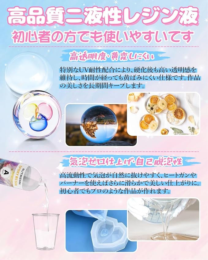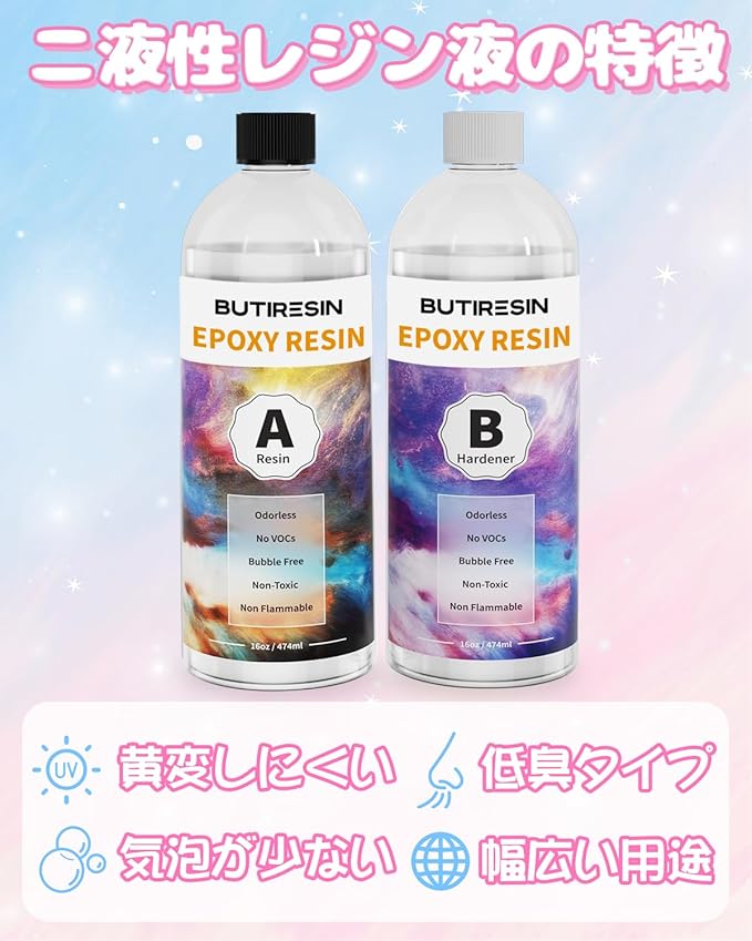 アフターサービス: ButiResinはレジン液の生産に10年以上の豊かな経験を持て、12ヶ月の品質.があります。商品に対するご意見など、お気づきの点がございましたらお気軽にお問い合わせください。