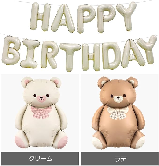 【飾り方いろいろ】誕生日パーティー、記念日、特別な日の飾り付けはもちろん、くまちゃんバルーンは可愛くて、子供にも大人にも大人気です、一緒に撮影するのもおすすめです。HAPPY BIRTHDAY文字風船は紐を通す穴があるので吊るしても、壁に貼り付けてもOK!
