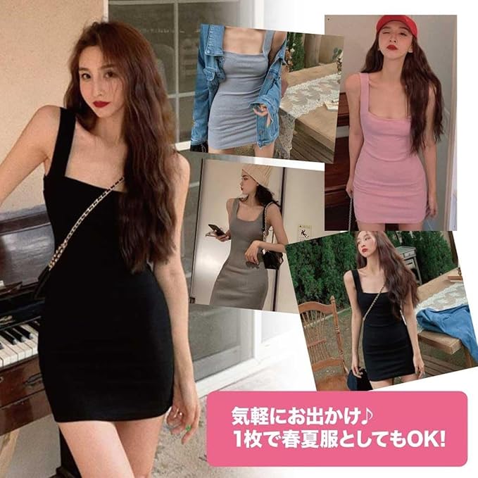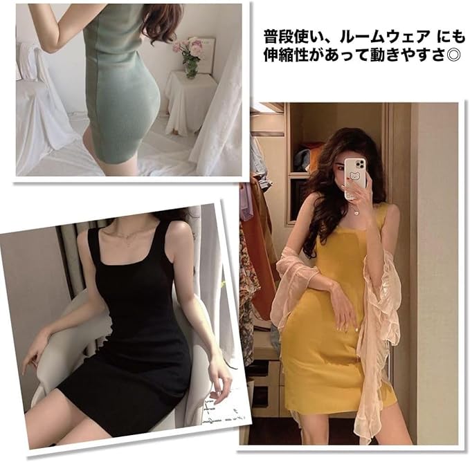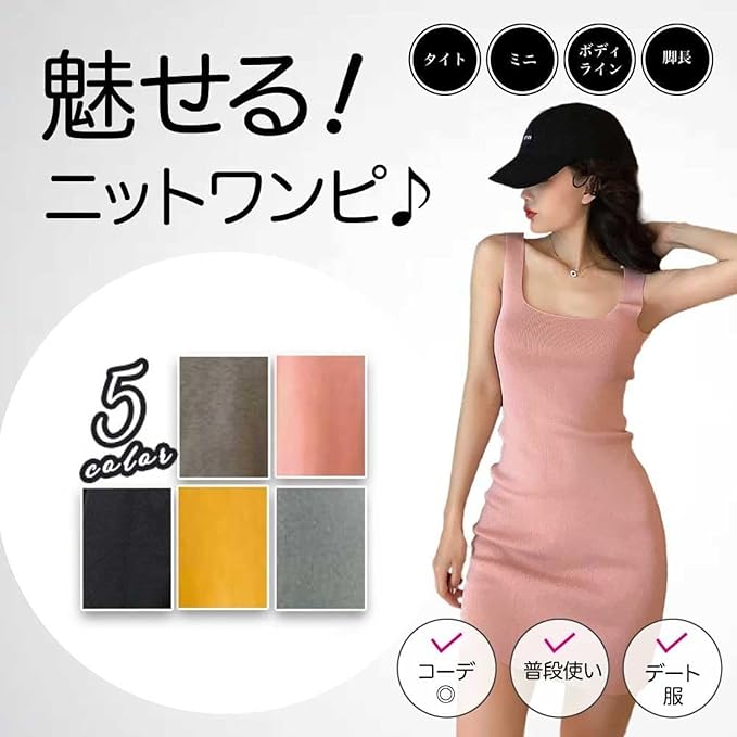 ポリエステル100%素材のミニワンピースを5色展開!ブラック、ピンク、グレー、カーキ、イエローで着回し自在。