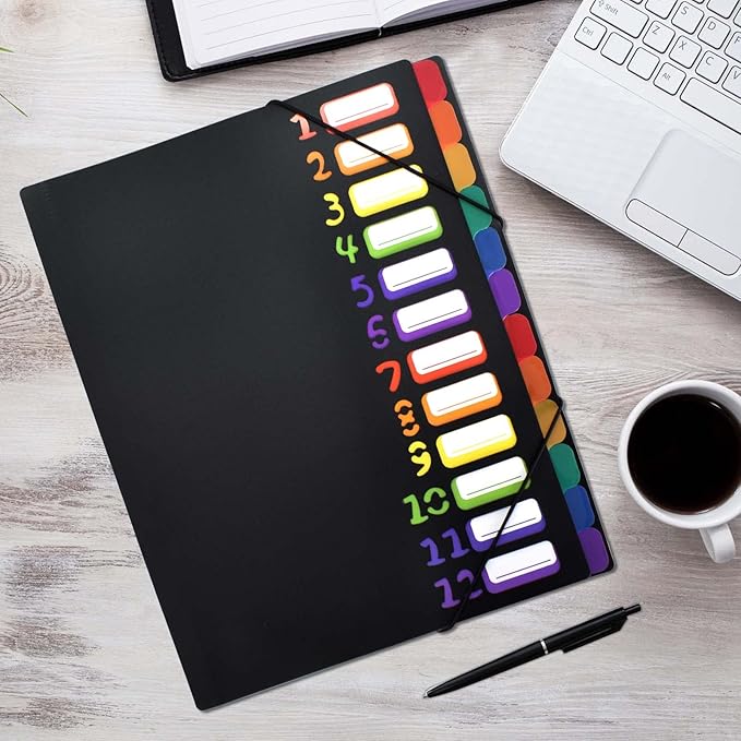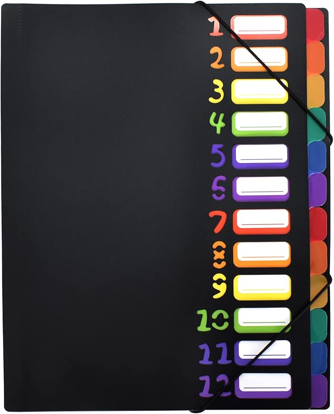 拡張ファイルフォルダー 12コンパートメント 24ポケット プラスチックアコーディオンドキュメントオーガナイザー カラフルなファイルフォルダーバインダー A4サイズ プラスチック アコーディオンファイルオーガナイザー ファイルストレージフォルダー 複数のポケット付き 教室 オフィス 自宅 出張用 (ブラック) | oioioichan