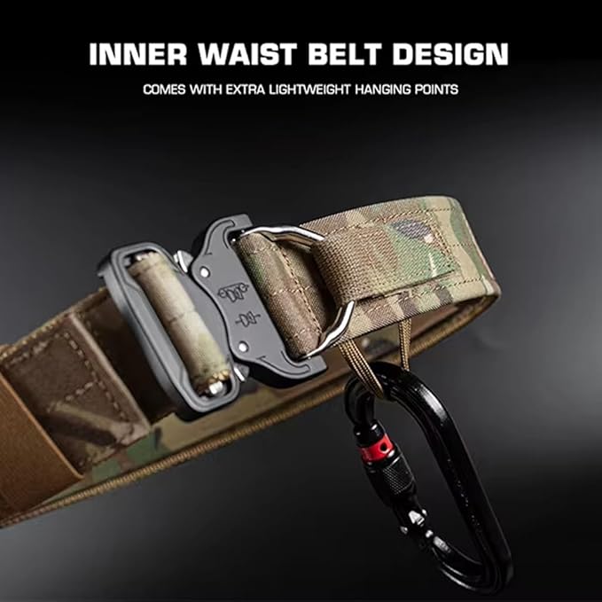 1. 高強度素材、耐久性:タクティカルベルトは高強度素材で作られており、耐久性と長寿命を確保し、複数の用途とさまざまな環境に耐えることができます。