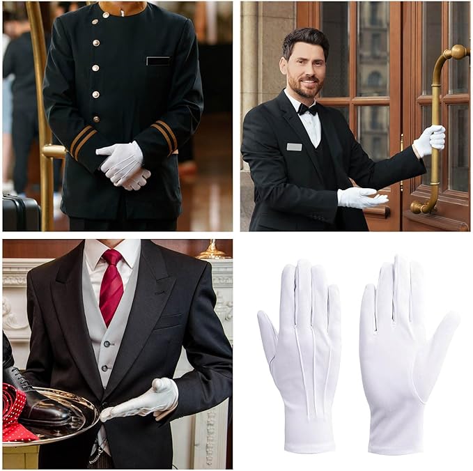 【軽くて通気性】軽くて、柔らかくて、通気性が良くて、肌に優しくて、着け心地が良くて、滑り止め機能があって、仕事中にも着用できて、長時間着用しても蒸れ感がなくて快適です!冠婚葬祭など厳かな場所や、大切なお客様への接客サービス、送迎など清潔感と品格が求められるシーンに適したエレガントな三本飾り白手袋です。10組セットでのお届けとなります。