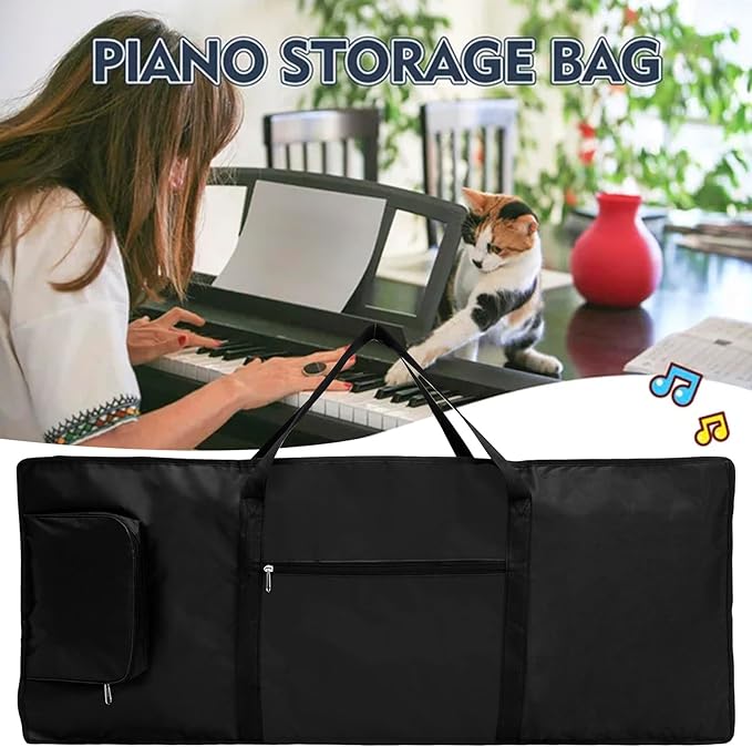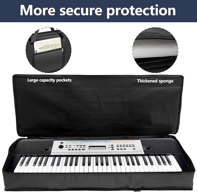 [2つのサイドポケット] 当社の61キーキーボードケースは、外側にジッパー式ポケット2つ付きで、譜面台、ミュージックブック、オーディオケーブル、サステインペダル、電源などを簡単に収納できます。
