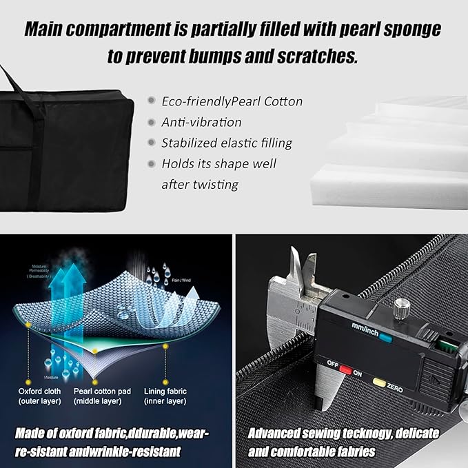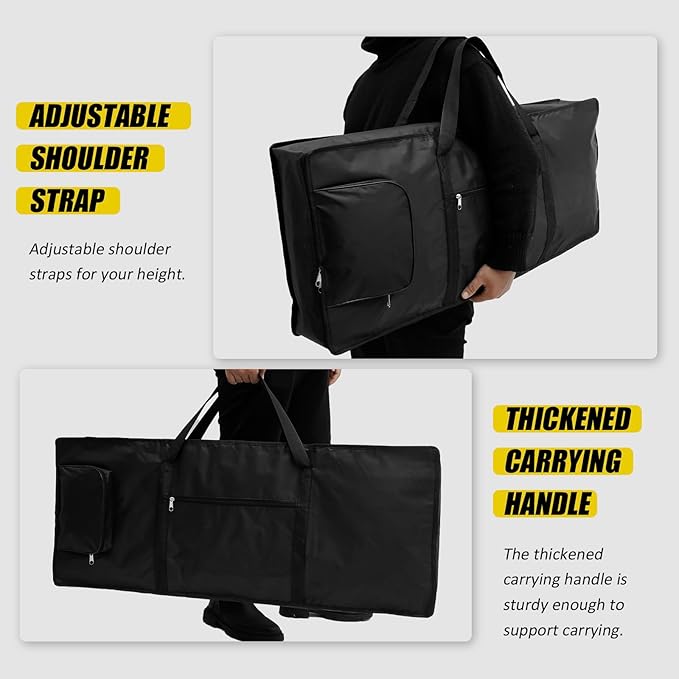 【ハンドルと調節可能なショルダーストラップ付き】当社のキーボードキャリーケースは破れたり壊れたりしにくく、厚みのあるショルダーストラップとハンドルは通気性があり、快適に持ち運べます。 身長に合わせて調節可能。2つのキャリーハンドルと2つの調節可能なショルダーストラップで、さまざまな持ち運びスタイルに対応します。