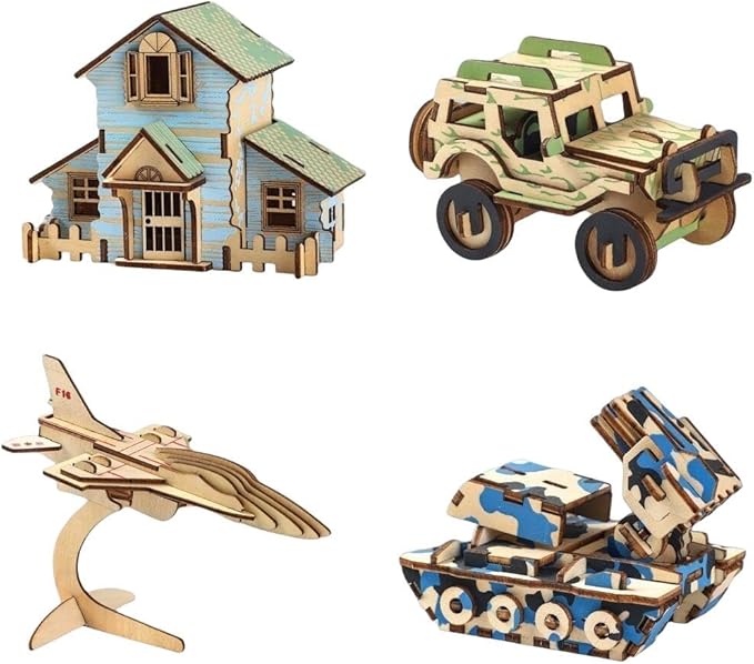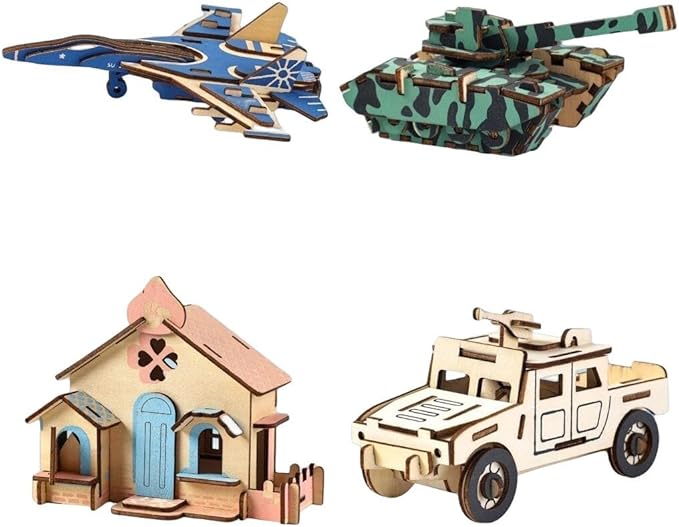 MOMOAO 乗り物 戦車 3D 立体パズル 木製 4種類セット 子供用 軍用車両 ハウス DIY 木製パズル パズル 模型 キット おもちゃ 組み立て 工作キット インテリア 飾り用 コレクション 縁日おもちゃ 創造力 思考力 家庭教育 誕生日 クリスマス ギフト 大人 プレゼント ホビー キッズ 女の子 子供会 記念品 縁日 景品 装飾品 (B 4個セット) | oioioichan