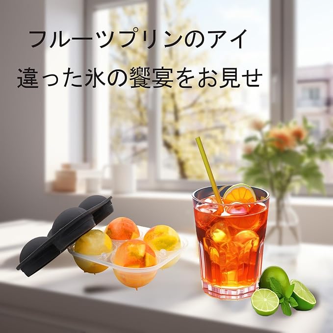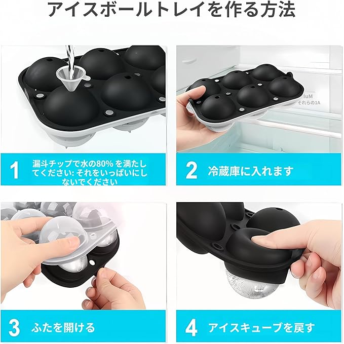丸い氷を簡単に作れる:シリコン製の製氷皿は、独特な形状で丸い氷を作ることができます。飲み物や、ジュース、お茶、お酒にぴったりの丸い氷をお楽しみください。