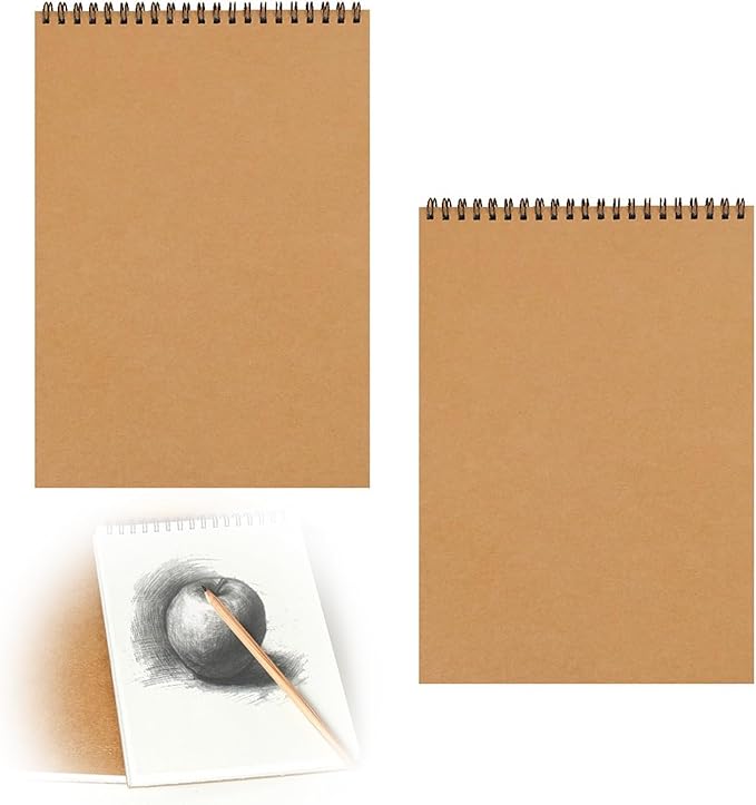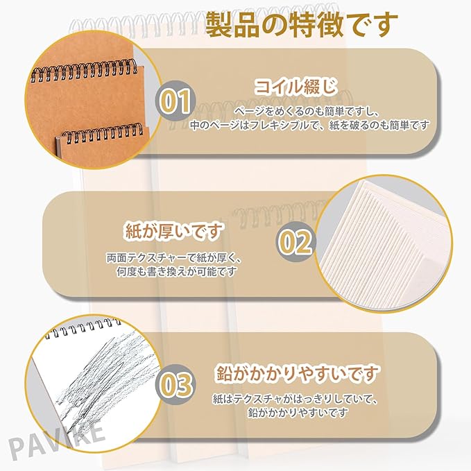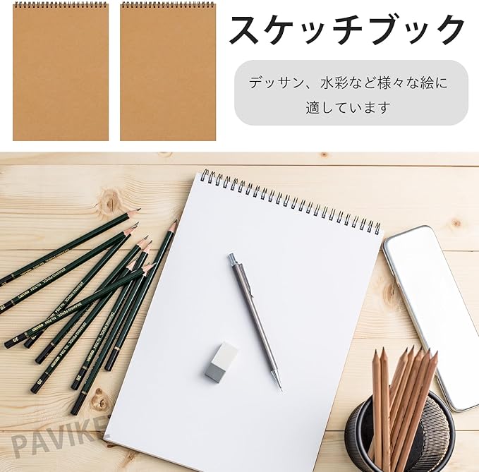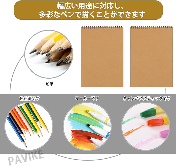PAVIKEスケッチ用ブック A5 お絵描き紙 子供 2本入り 水彩紙 ドローイングブック ダブルコイルで設計 持ち運びが簡単 絵コンテ用紙 ベラムカバー 頑丈で耐久性がある 空白ノート 多目的 スケッチ、落書き、水彩画、スケッチ、デッサン、メモ書きなどに使用できる(約14.8x21cm) | oioioichan