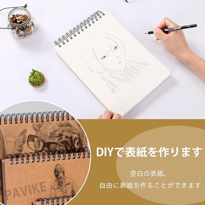 【優れたクラフトマンシップ】多目的 空白ノートの表紙は高品質のクラフト紙でできており、厚く丈夫で、あなたのドローイングが壊れたり傷ついたりするのを防ぎます。内側のページは書きやすく、描きやすく、使い心地が良い、滑りにくい、厚めの紙でできており、何度でも消しゴムでボール状になりにくく、吸水性がよく、色がにじみにくいので、良い描き心地をもたらします。