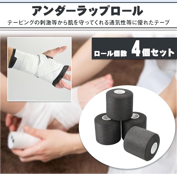 【セット内容】アンダーラップロール 4巻 【サイズ(約)】7cm 27m 【カラー】ブラック