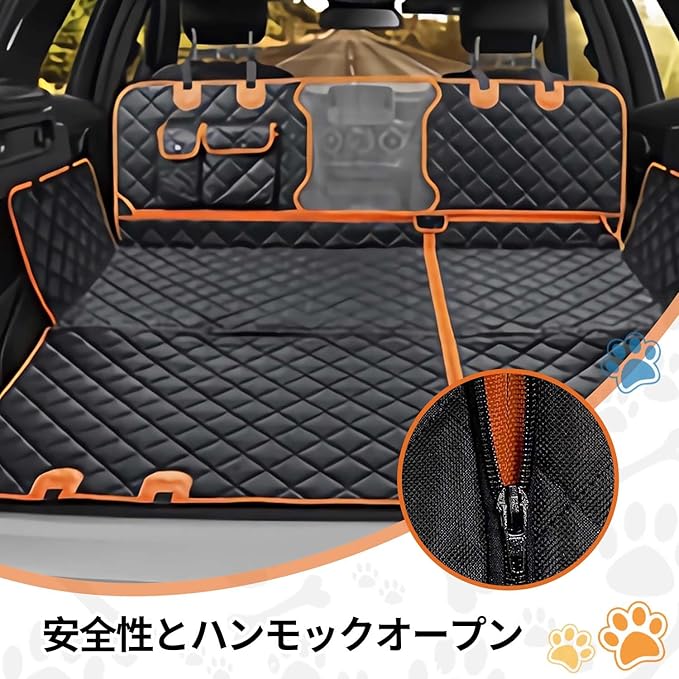 【滑り止め&より安全なドッグカーハンモック】滑り止めの裏地とシートアンカーがシートカバーの滑りを防ぎます。このペットシートカバーはサイドフラップと2つのベルクロ開口部が特徴で、ペットをさらに保護します。