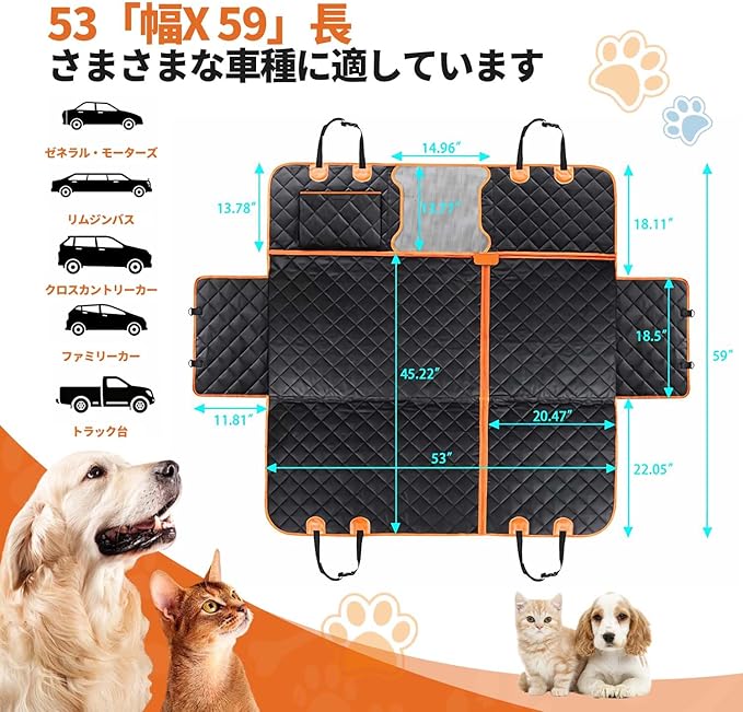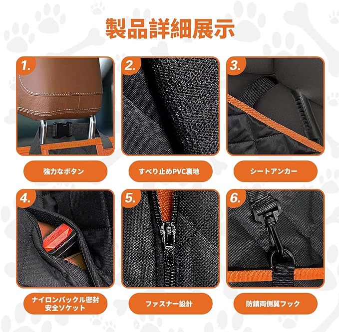 【取り付けとお手入れが簡単】後部座席の犬用カバーを取り付けるのに数秒しかかかりません。 バックルストラップを車のヘッドレストに巻き付け、シートアンカーを押し込むだけです。 湿らせた布や掃除機で簡単にお手入れできます。