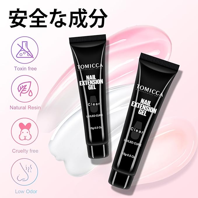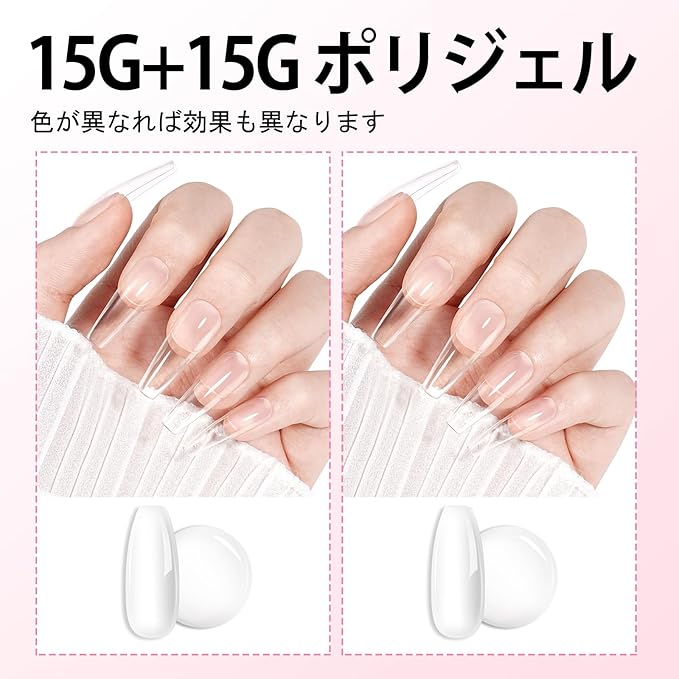 【アクリルの刺激臭がない】刺激臭がなく快適な施が可能です。本ポリネイルジェルの内容量は15g*2本、より手頃な価格を実現。