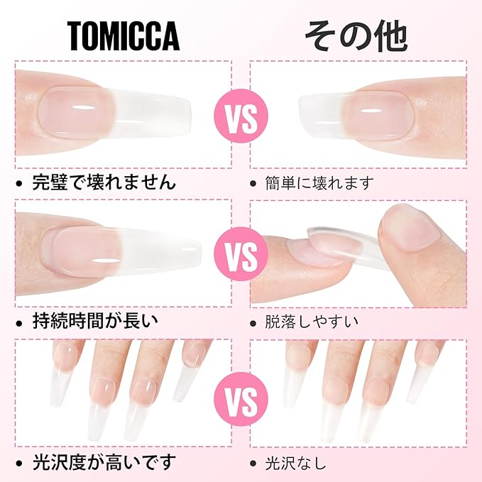 【丈夫で軽量】丈夫で傷などからあなたの爪を保護します。弱い爪、二枚爪、割れやすい爪の補強に最適です。羽のような重さで爪に負担がありません。まるで本来の爪のようです。