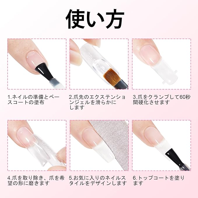 【綺麗になる】長さ出しジェルは可愛いネイルをしたい!けど爪の長さが...そんな方にぴったり!爪が長いことで指が長く見え、手全体を美しく見せることができる!塗りやすいので、初心者の方にもお薦めします。自宅でもネイルサロンをお手軽に楽しめます。