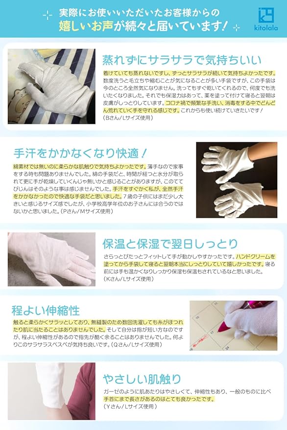 【美容皮膚科の看護師監修】 綿手袋 より優しい 手荒れ 手袋 保湿手袋 白手袋 就寝 ナイト手袋 Lサイズ 10組20枚 レディース 子供 ててびじん kitolala (10, L) | oioioichan