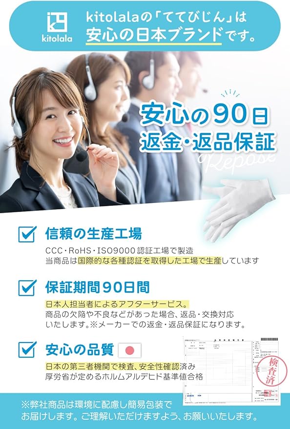 【品質】日本国内メーカー。日本の第三者機関で検査を行い安全性確認済み◎ 厚生省が定めるホルムアルデヒド基準値合格◎ CCC ・ RoHS ・ ISO9000認証工場で製造しているため安心の品質◎ 90日間.あり◎