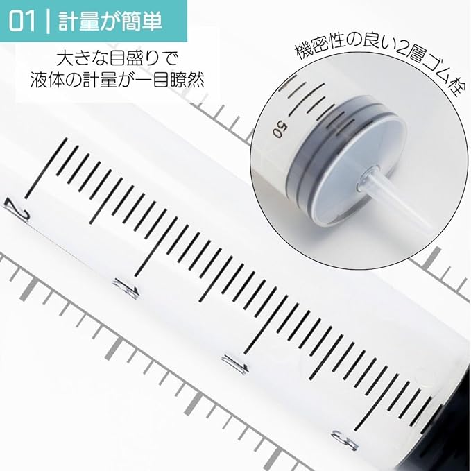 【精密作業の強い味方】大容量シリンジで液体の注入・吸取りを一層簡単に。明瞭な目盛り付きで正確な計量が可能です。ペットの給餌、車のメンテナンス、園芸用途など、多目的に使用できる万能アイテムです。加えて、柔軟な30cmチューブ2本付きで、狭い箇所へのアクセスも容易に。