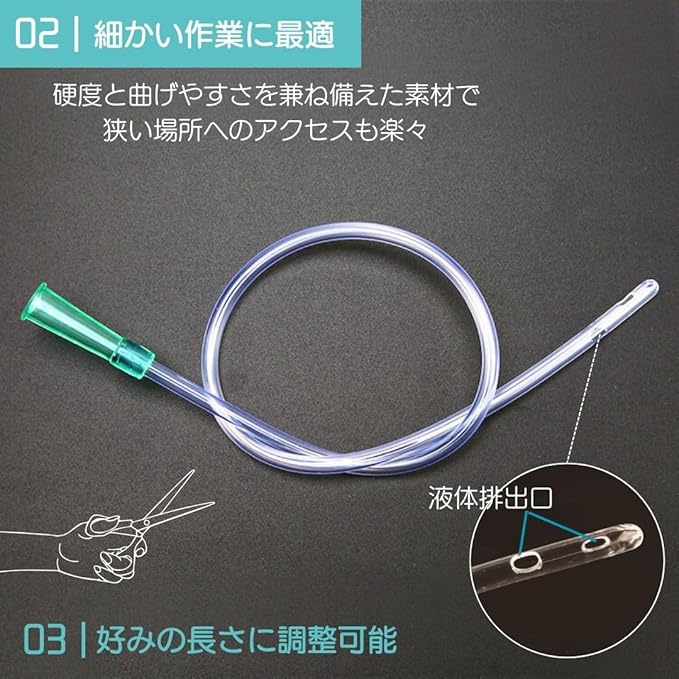 【細かい作業に最適】このシリンジは、大きな目盛りで液体の計量が一目瞭然。30cmチューブ2本は、任意の長さに調整可能。硬度と曲げやすさを兼ね備えた素材で、あらゆる場所へのアクセスをサポートします。