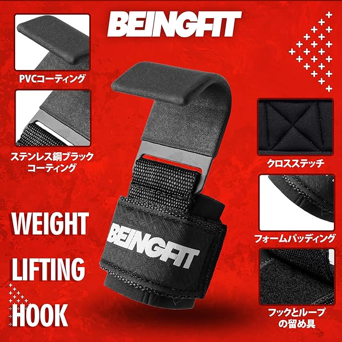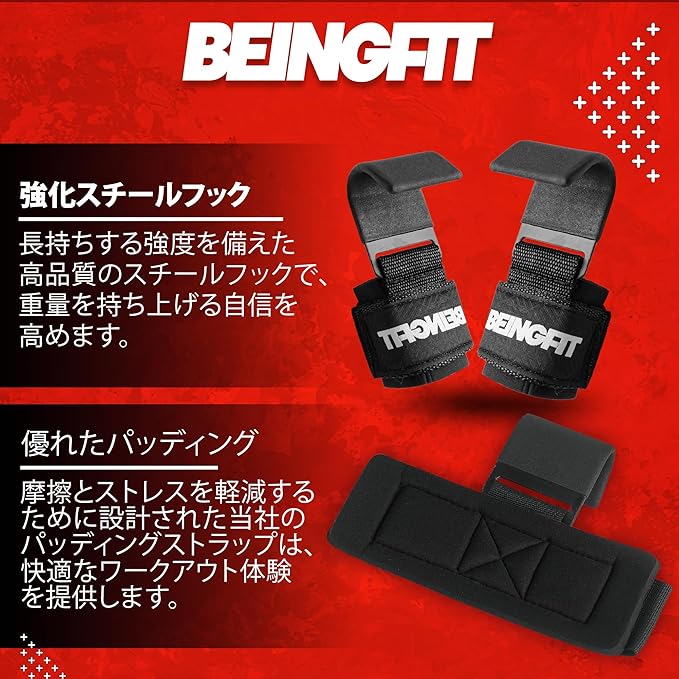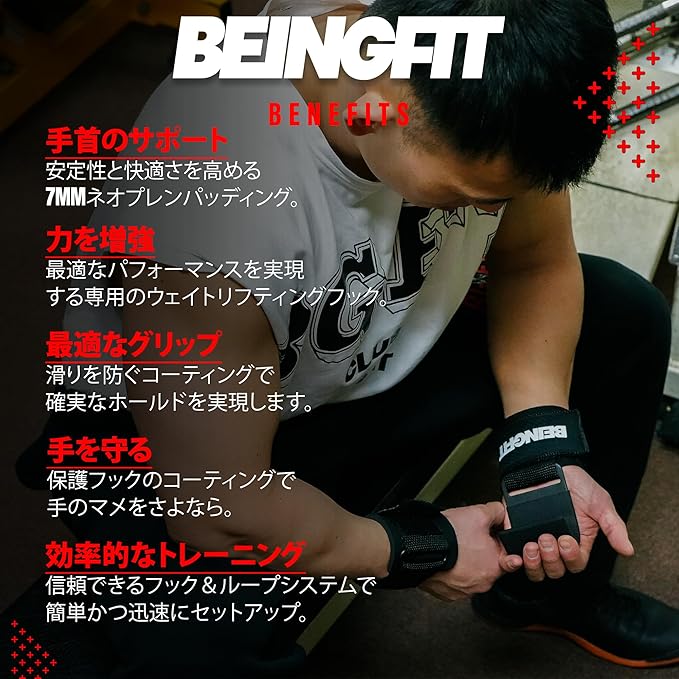 プロフェッショナルグリップ強化: Beingfitのウエイトリフティングフックは、重量挙げ時の握力をサポートし、より効果的なトレーニングを実現します。手の疲れを軽減し、パフォーマンスを向上させます。