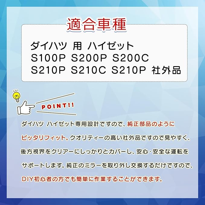 ✅ハイゼットトラックのための優れたダイハツ社外品サイドミラー。クリアな視界と運転の快適さを提供。各車種にピッタリの交換用ミラー。