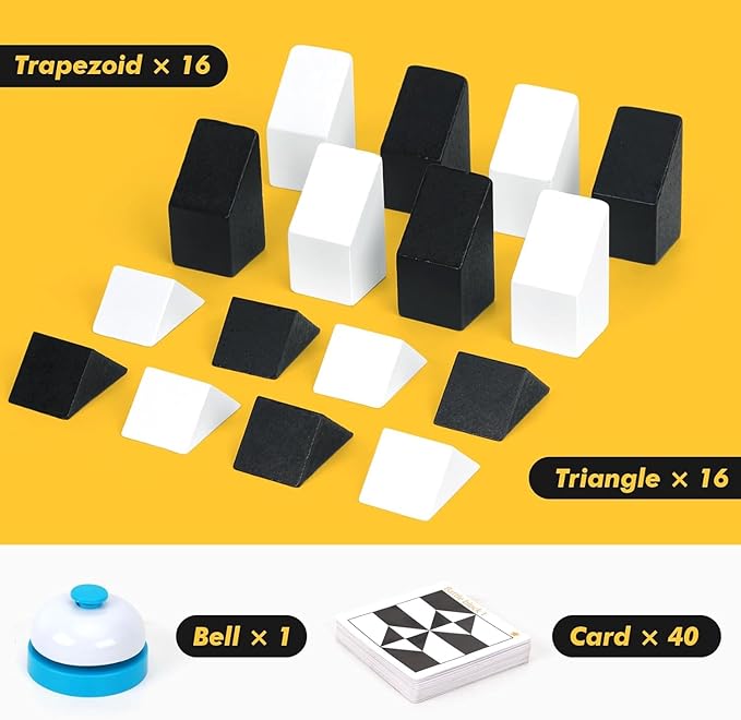 素晴らしい頭の体操 - これらのブロックの形はさまざまな方法で組み合わせることができるので、同じ基本的な形で多くの異なるデザインを作成できます。向きを変えてフレームに戻し、フラッシュカードのパターンを完成させます。