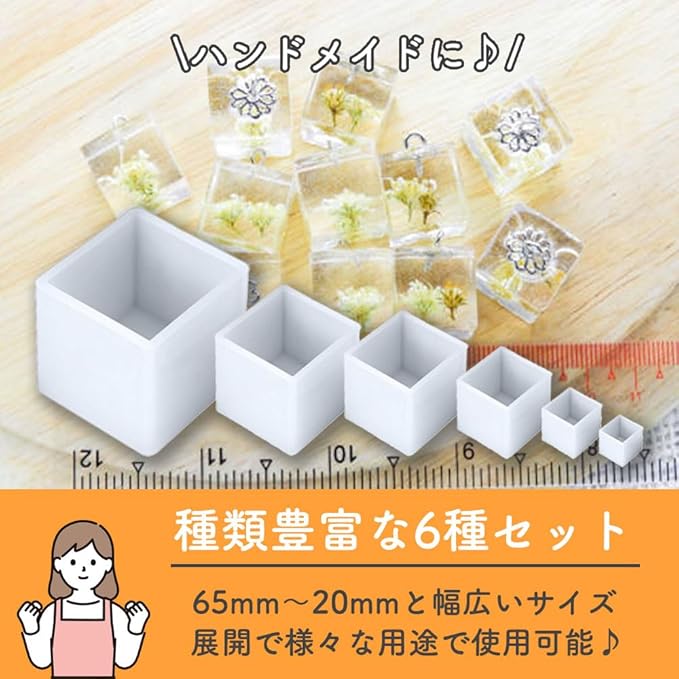 【種類豊富な6種セット】大きいサイズは65mm、小さいサイズは20mmと幅広いサイズ展開で様々な用途で使用可能です。大きい作品や小さいアクセサリー、ミニ石鹸作りなど色々なハンドメイドが楽しめます。