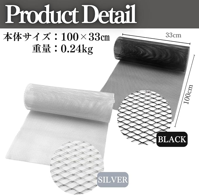 【商品サイズ】選べる編み目は4サイズ・4x8mm/6x12mm/8x16mm/10x20mm 本体サイズ:100 33cm 重量:0.24kg カラー:ブラック/シルバーの2色展開
