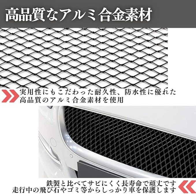 【愛車の魅力を引き出す】フロントグリルのカスタムは、車の印象を大きく変える鍵。アルミ製のメッシュネットで、耐久性とスタイリッシュなデザインを手に入れ、あなたの車を一段と引き立てます。