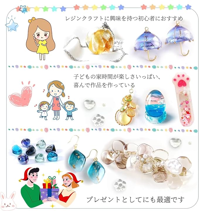 【高品質と安全性】ビューティレジンはVOCなし、無毒で無害な素材で作られています。臭いもきつくは無く環境にやさしくて、安心して使えます。サラサラタイプなので、べたつきが残らない。縮みや歪みもないので初心者さんにも使いやすい。