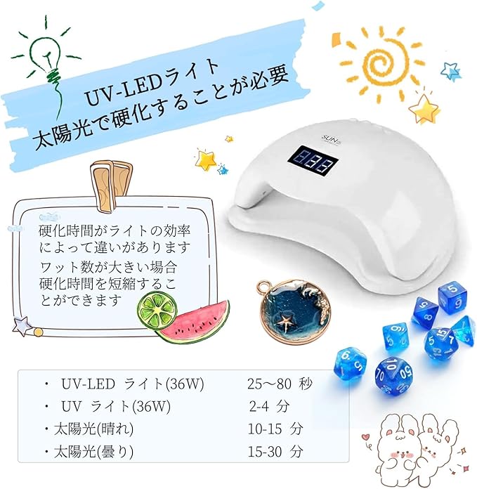【急速硬化】2液性レジンに比べて、硬化時間は短く、短時間でキレイな仕上がりをお楽しみいただけます。ノズルのデザインで液体をモールドに注ぐのに役立ちます。