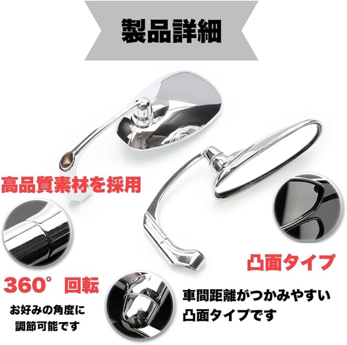スタイリッシュなオーバルバレンミラー左右セット!車間距離もつかみやすい凸面タイプ