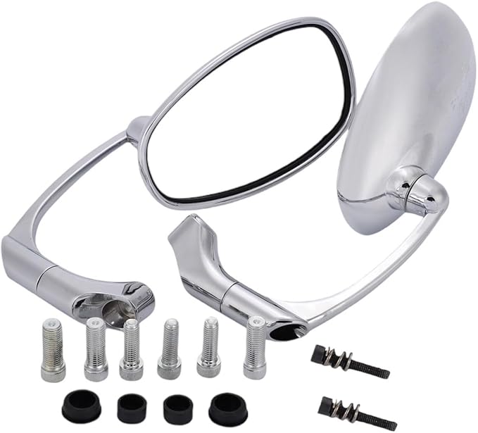 Kanoan オーバル バレン ミラー バイク オートバイ サイドミラー 汎用 8mm 10mm フォルツァ ドラックスター TR250 CB400SF 等 左右セット シルバー メッキ 社外品 修理 交換 カスタム (メッキ) | oioioichan