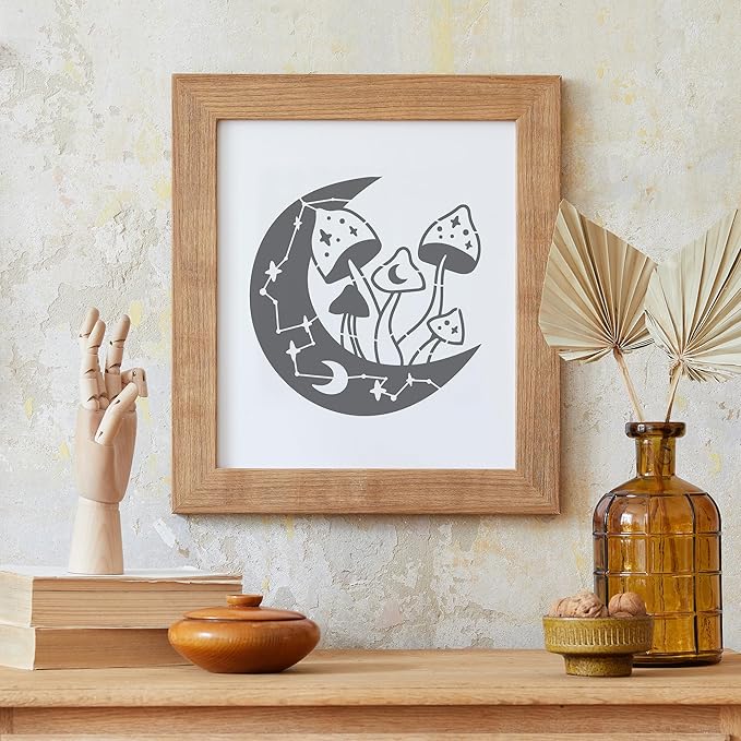 Keluna マッシュルームステンシル 用 18個 ボヘミアンマッシュルームステンシル アートクラフト用 12インチ Lサイズ 再利用可能 三日月 フェーズ 描画 テンプレートステンシル 木製壁キャンバスのペイント用 ホームデコレーション | oioioichan