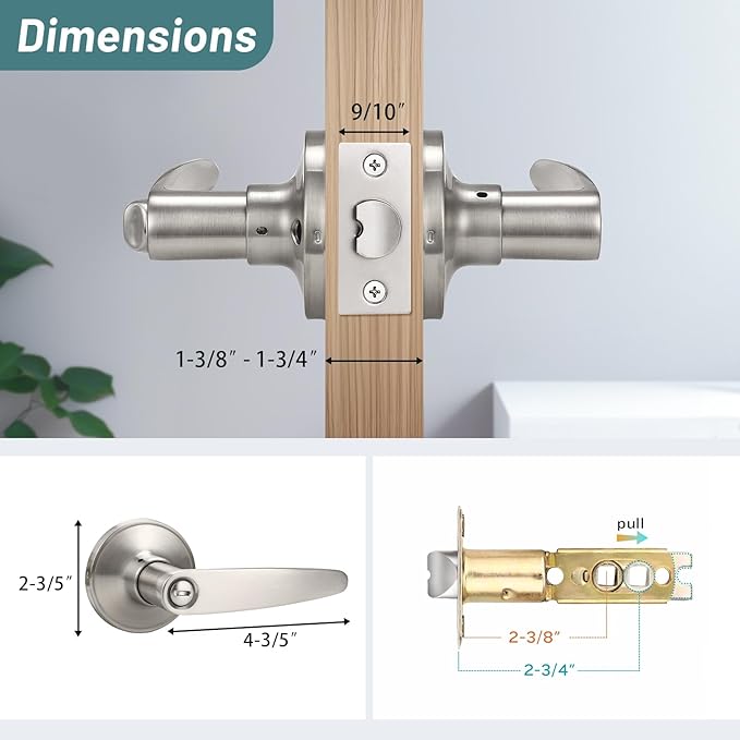ほとんどのドアに適しています: ドアの厚さは1-3/8インチ~1-3/4インチ (35~45mm) で、ラッチの長さは2-3/8インチまたは2-3/4インチ (60または70mm) で、左右どちらのドアにも適しています。 万能なドアハンドル ソリューションで、完璧なフィット感とシームレスな操作を体験してください。