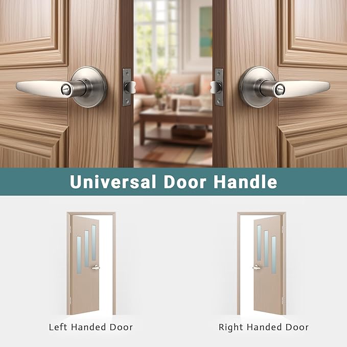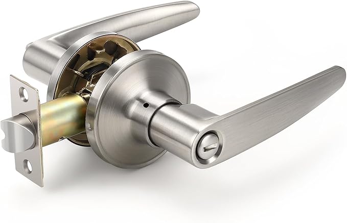 DECORITEN プライバシードアレバー 室内ドアハンドル 寝室とバスルーム用 キーレスブラッシュドニッケル ドアハンドルロック ルームドアロック 右利きと左利き用 10個パック | oioioichan