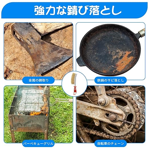 【錆の除去、除草、汚れの除去】ワイヤーブラシ 真鍮は重作業に適しており、錆やペンキをすばやく除去することができます。真鍮ブラシ サビ取りはペンキの汚れ、溶接スラグ、半田、スケール、さびを除去する理想的なツールで、部品、設備、機械、その他の表面のさびなどを除去するのに最適です。タイルをきれいにしたり、雑草を取り除いたりすることもできます。
