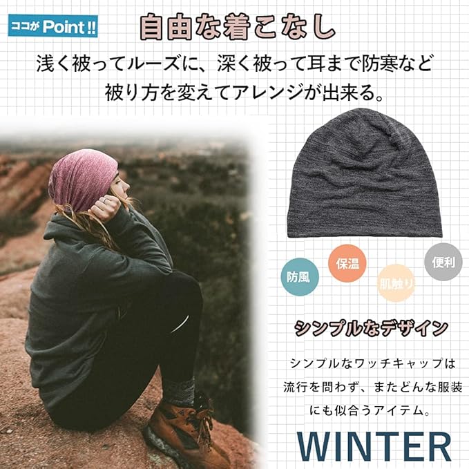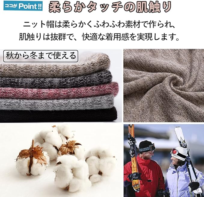 【被り心地良い】ニット帽がふんわりとした肌触りの素材を採用していて、柔らかく締め付け感がなく、着心地がとても快適です。頭の中心に向かって丁寧に縫い合わせているので、頭の形をきれいに保ってくれます。長時間被っても崩れずにきれいなシルエットで被ることができる縫製。