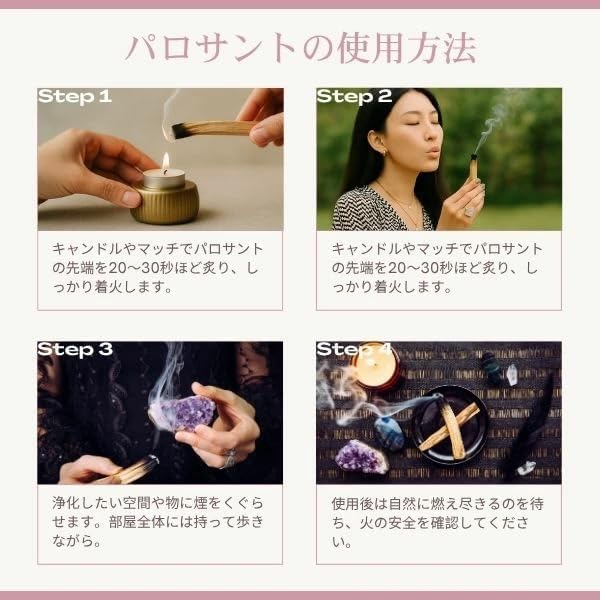 ペルー産の質の高いパロサントスティックをお届けします。現在の市場では、フレグランスで後から香りを付けられたり、保存状態が悪化した製品が多く見られますが、私たちはそのような製品とは一線を画しています。純粋なパロサントの香りを味わっていただくために、一切の人工的な添加物や後付けの香りを使用していません。お客様には、自然の力を感じながら心地よい浄化体験をお楽しみいただけます。
